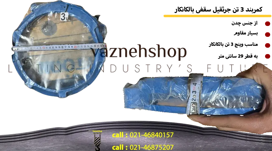 کمربند 3 تن بالکانکار از جنس چدن و دارای قطر خارجی 25-30 سانتیمتر می باشد و با کیفیت بالا ، مقاومت عالی و ایمنی استاندارد ، توانایی جابجایی بارهایی تا ظرفیت 3200 کیلوگرم (3 تن) را دارا میباشد . استفاده از کمربند اصلی 3 تن بالکانکار و اورجینال بالکانکار باعث افزایش طول عمر دستگاه ، کاهش استهلاک و بهبود راندمان کاری میشود .