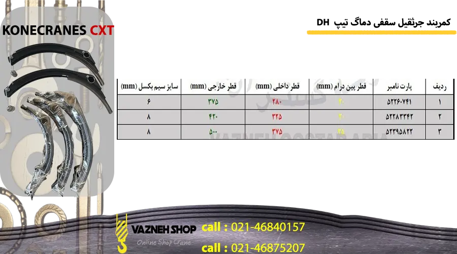 **برای خرید انواع کمربند جرثقیل سقفی ، به قطر سیم بکسل (از ۸ میلیمتر تا ۴۰ میلیمتر) و مدل جرثقیل توجه کنید**